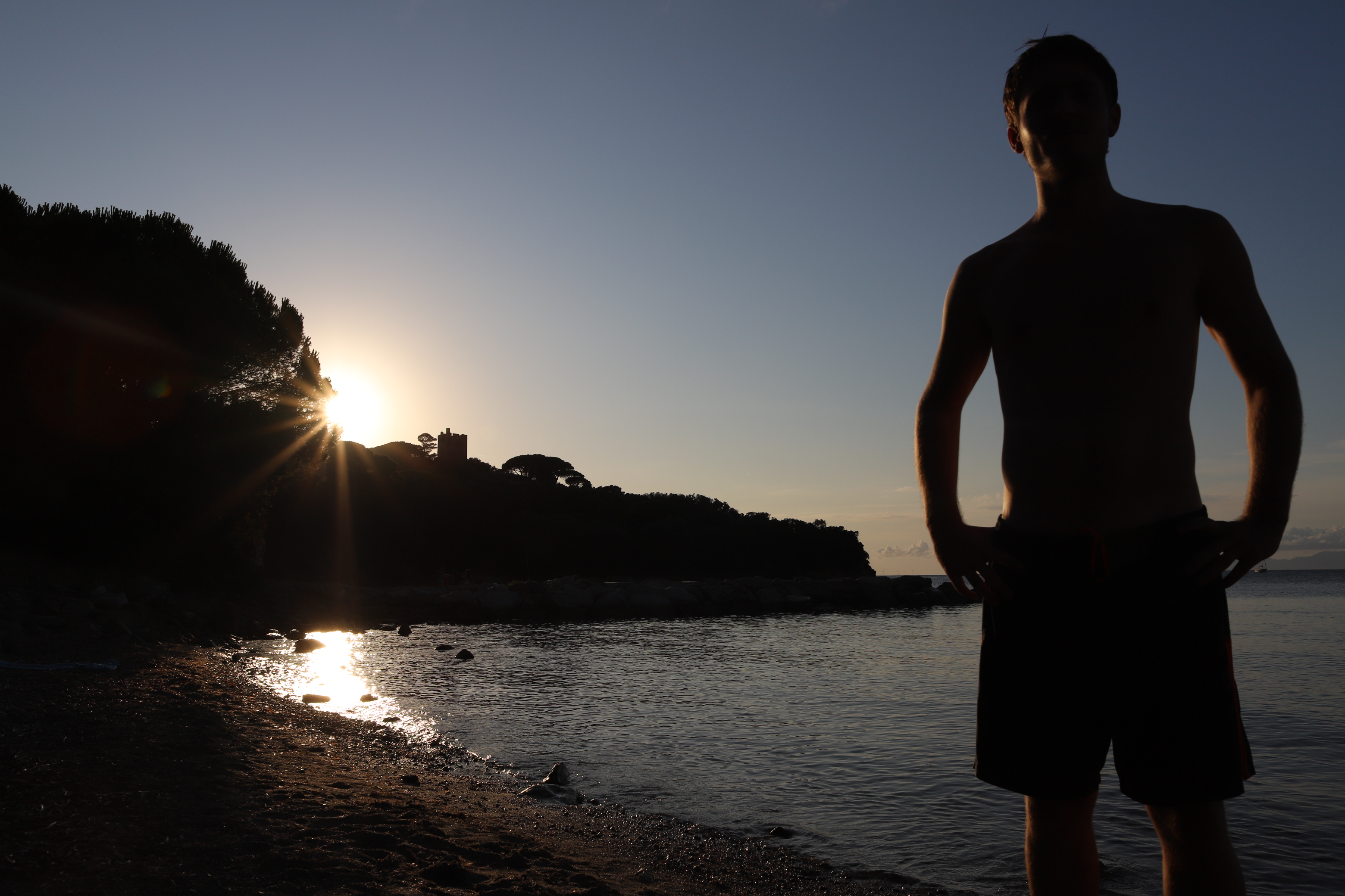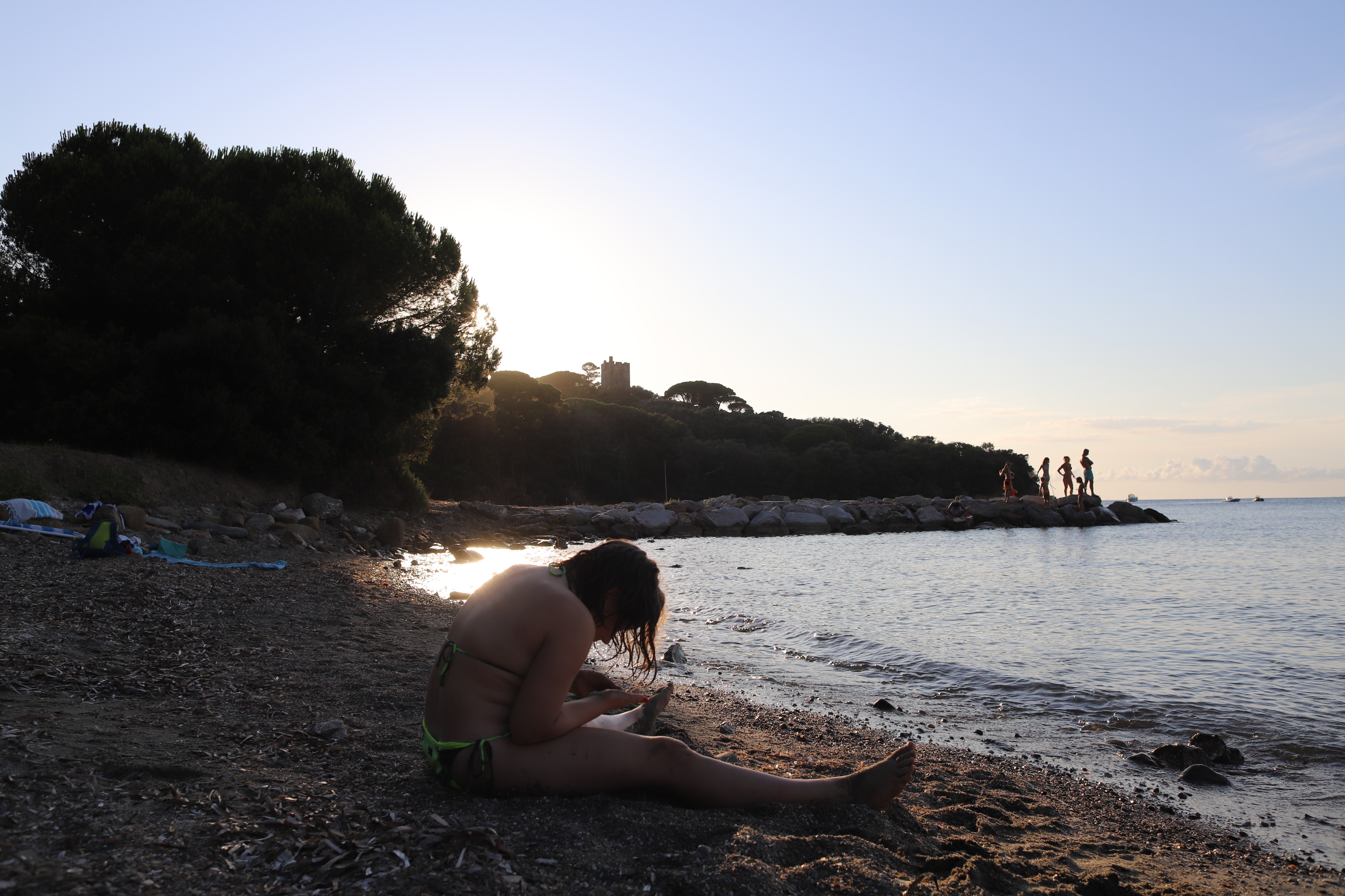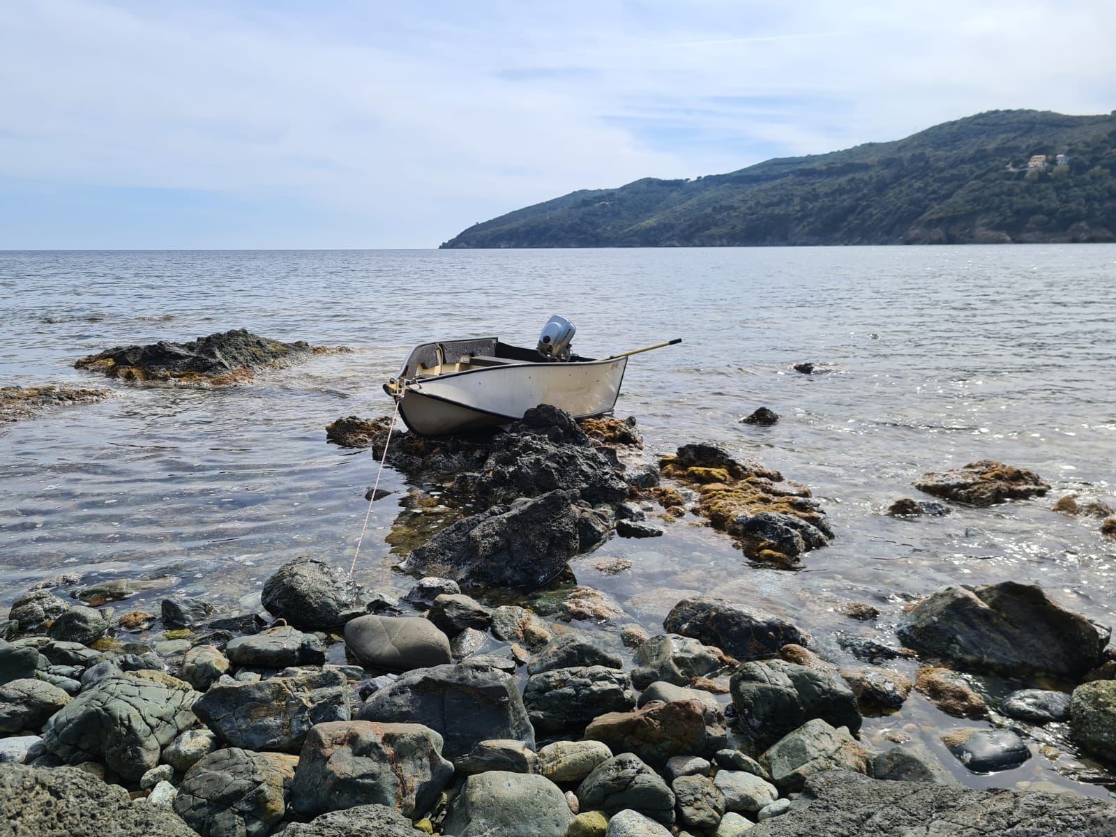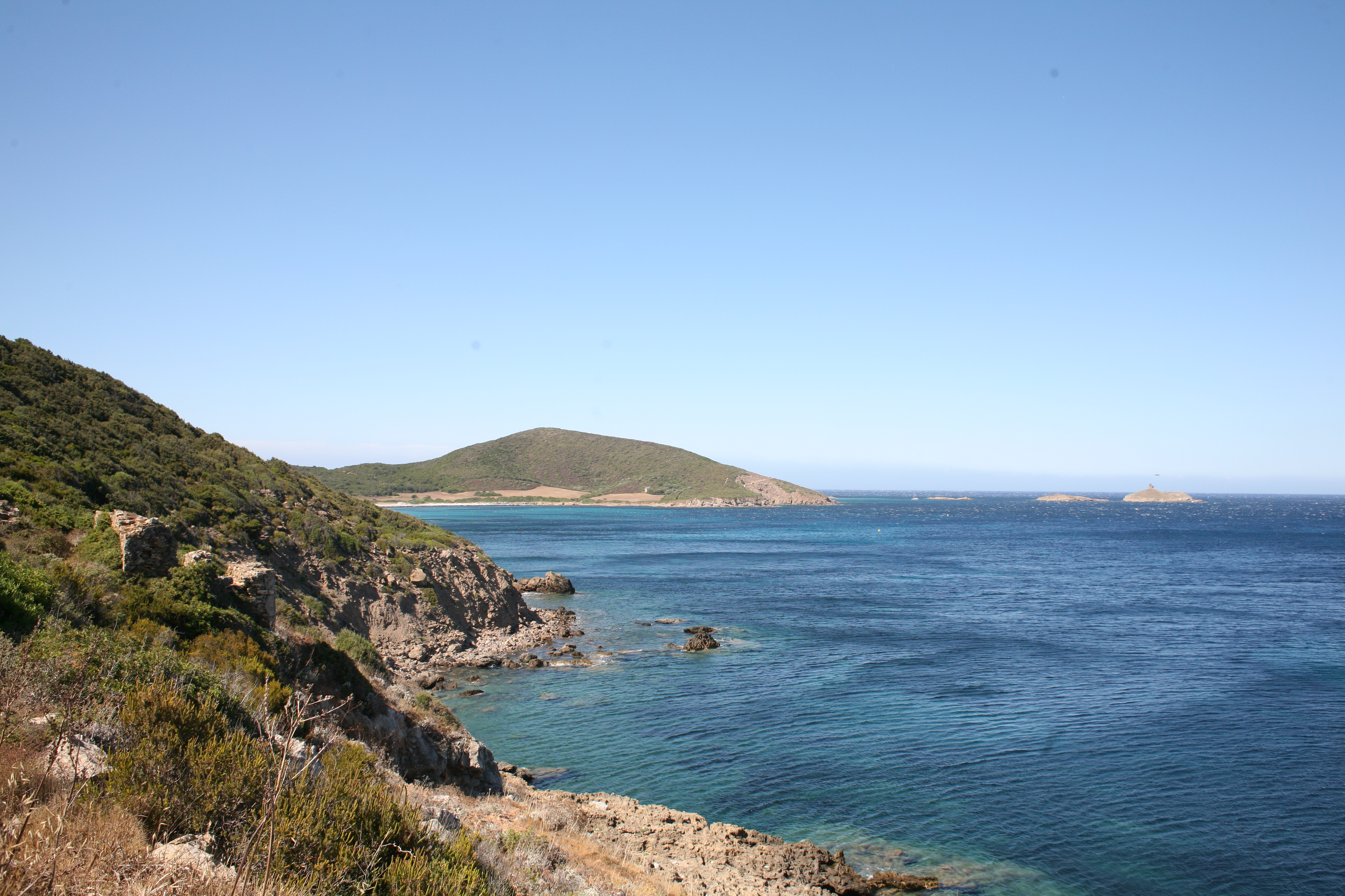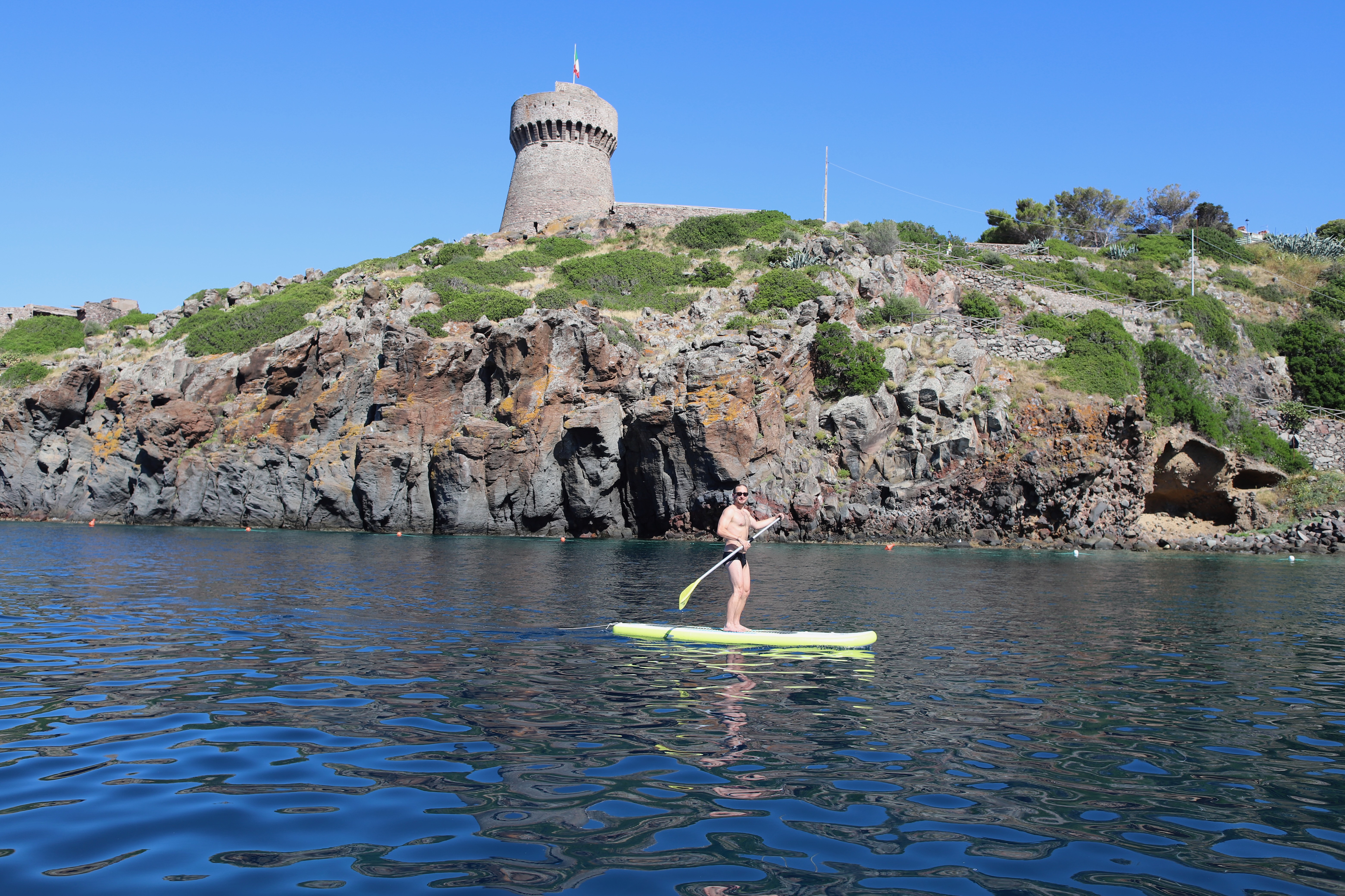 Wir standen drei Tage in einer traumhaften Bucht, der einzigen von Capraia im Nordosten, eine hübsche Einfahrt, ausgeschildert backbords mit einem cubistischen Kastello auf einem Steilfelsen und einem weiß getünchten Leuchtturm. Um die Ecke wirds etwas flacher, mit Steinen, Mauern, Beflanzungen kultiviert und mit einem Weg nach oben bis zu einem Torre. Da ist er wieder, dieser vertraute harzhaltige Geruch nach Zitrone irgendwie, aber auch nach Wein, Thymian oder Salbei. Blöderweise drängen beim Einlaufen in die Bucht zwei kürzere Hafenmolen ins Auge, so hoch aufragende Biester aus riesigen Steinen – aber – wer kann es den wenigen Einheimischen verdenken, wenn sechs Monate im Jahr schwere Brecher und Sturm die Beckdecken befeuchteln?