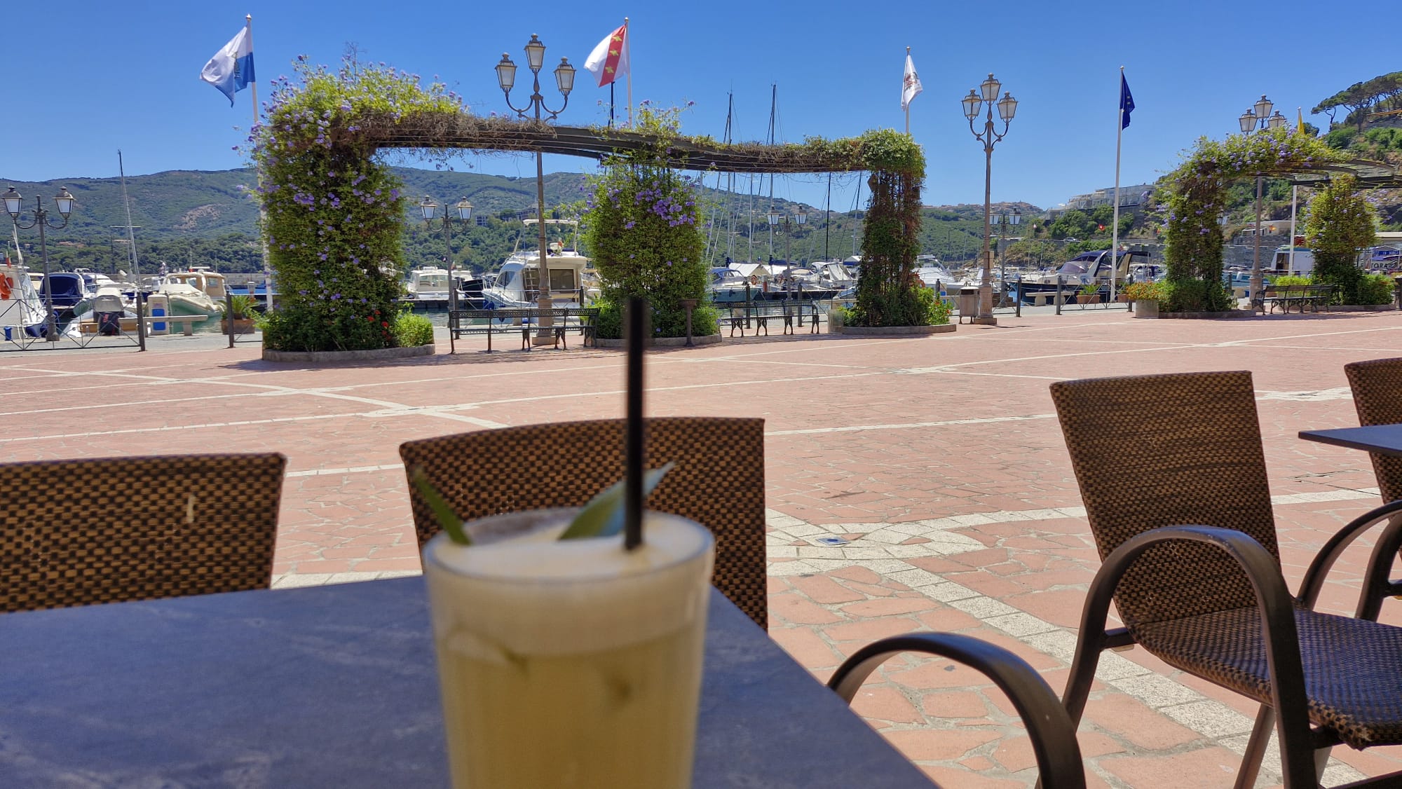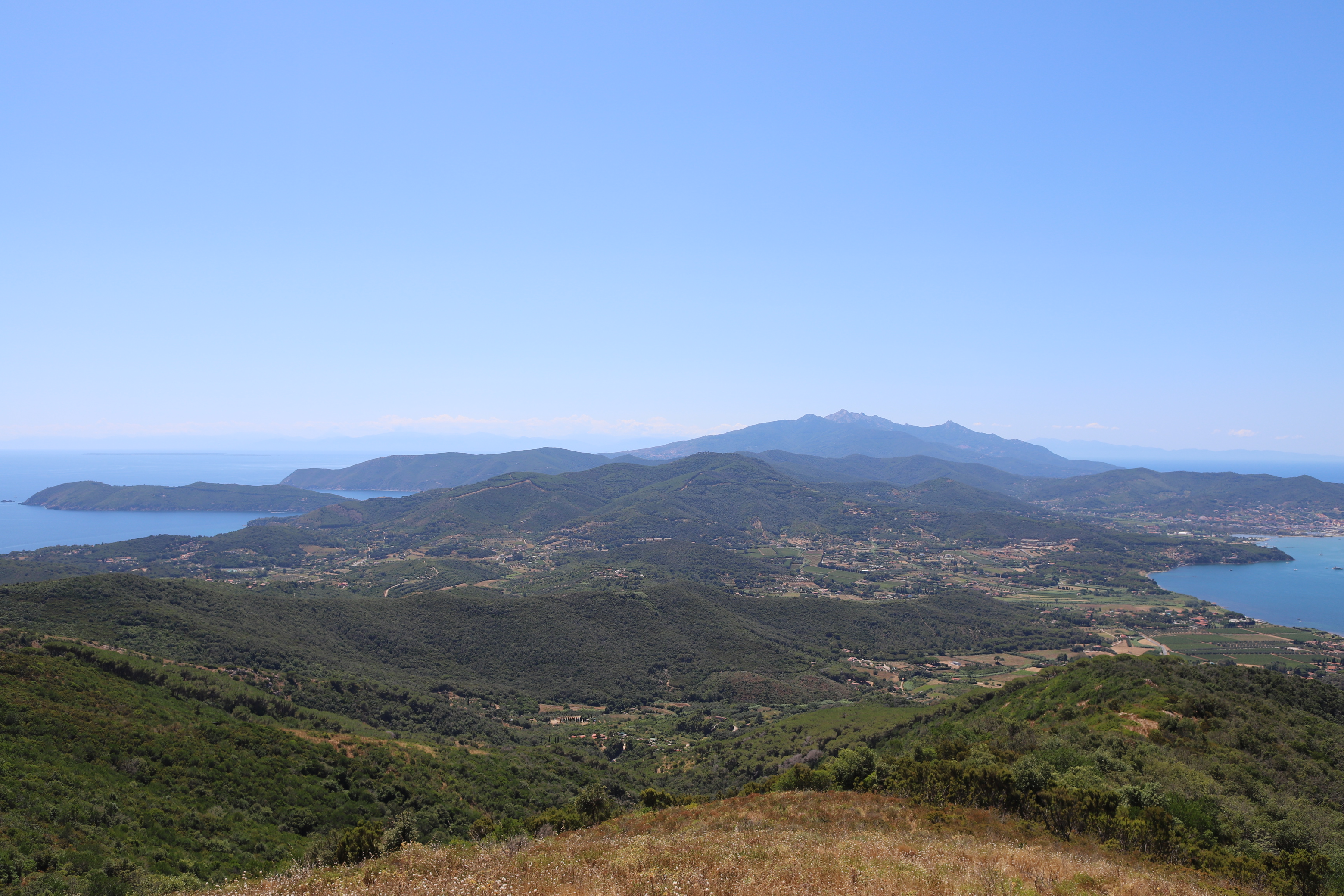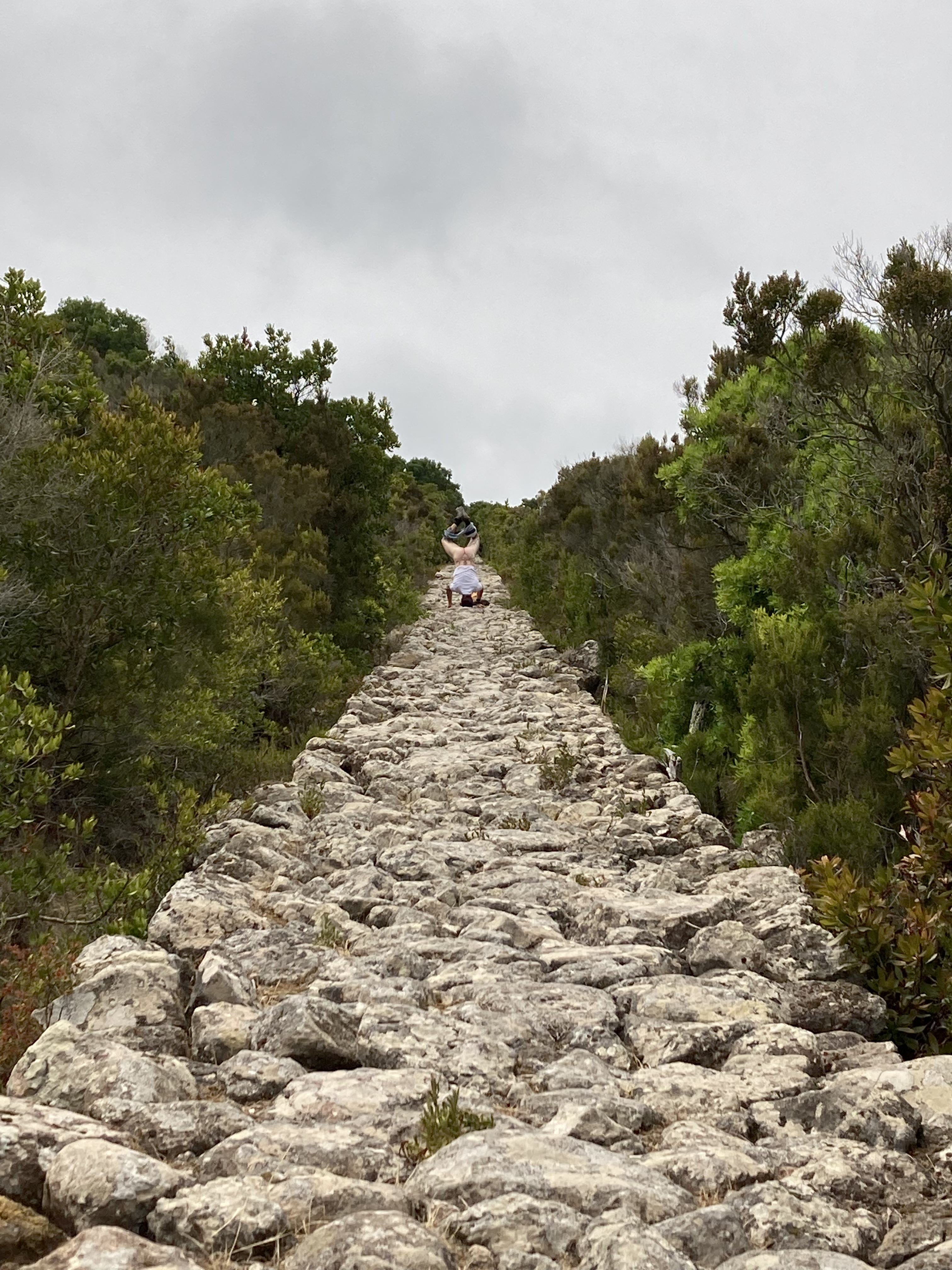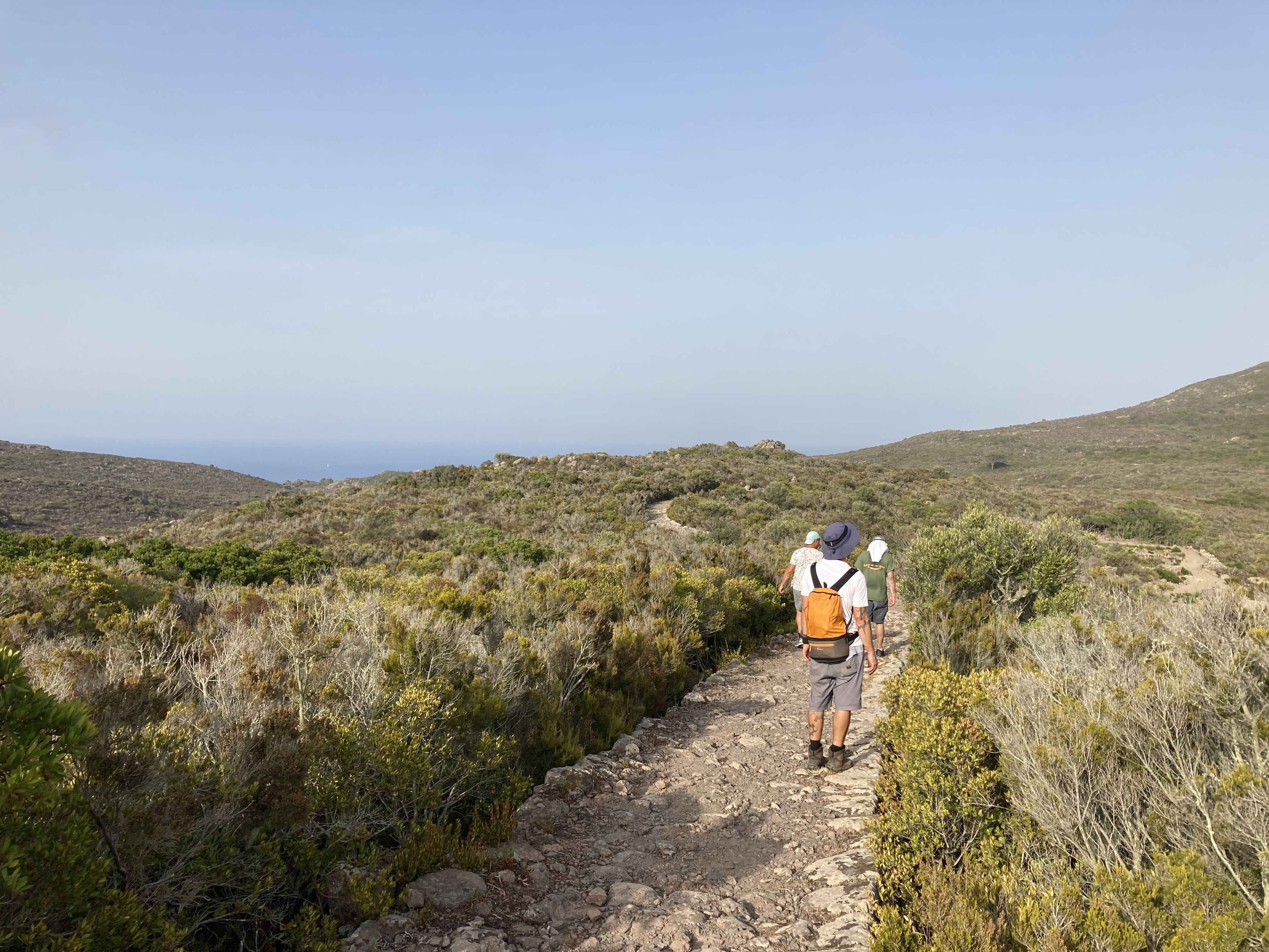 Bereits am zweiten Abend hat der Kapitän einen Plan für den nächsten Tag erdacht. Zum Leidwesen von Mamabert war es sein fester Wille, einen Gipfelsturm zu wagen. So gings am Tag drei für zwei Stunden bergauf, meist auf einem gemauerten Weg aus umliegenden Steinen, schön gemacht, von — sagen wir mal, Sklavenhand?? Ein Weg, auf dem Spartakus in Richtung Rom oder sonstwo getrieben wurde, erinnerte uns unzählige Male an einen klassichen Via Roma, wir glauben, dass der Name des Wegs jedenfalls so lauten musste. Davor gingen wir noch in die Uffici des Hafens, nach einem Wetterbericht fragen: Che tiempo fa, äh domani?? War die Frage, wir bekamen einen Wetterbericht ausgedruckt, gleich fragten wir noch nach der Tankstelle, gleich neben dem Büro. Ja, bis zum Sommer gibt es nur Self-Service. Ok, gracie. Perfekt. Aber dann schauten wir uns die Tanke an und stellten fest, dass die Hafenmauer unterhalb der Wasserlinie nach draußen sprang. Da bohrten sich also Steine in Ilvas Seitenwand, außer man hat Fender der Marke „Supersize“. Wollten wir Ilva damit bestrafen? Niemals!!!