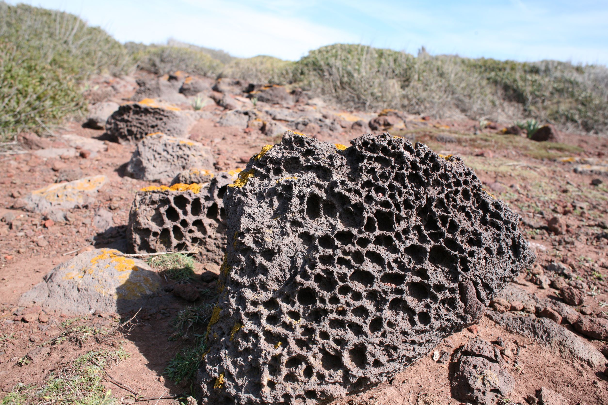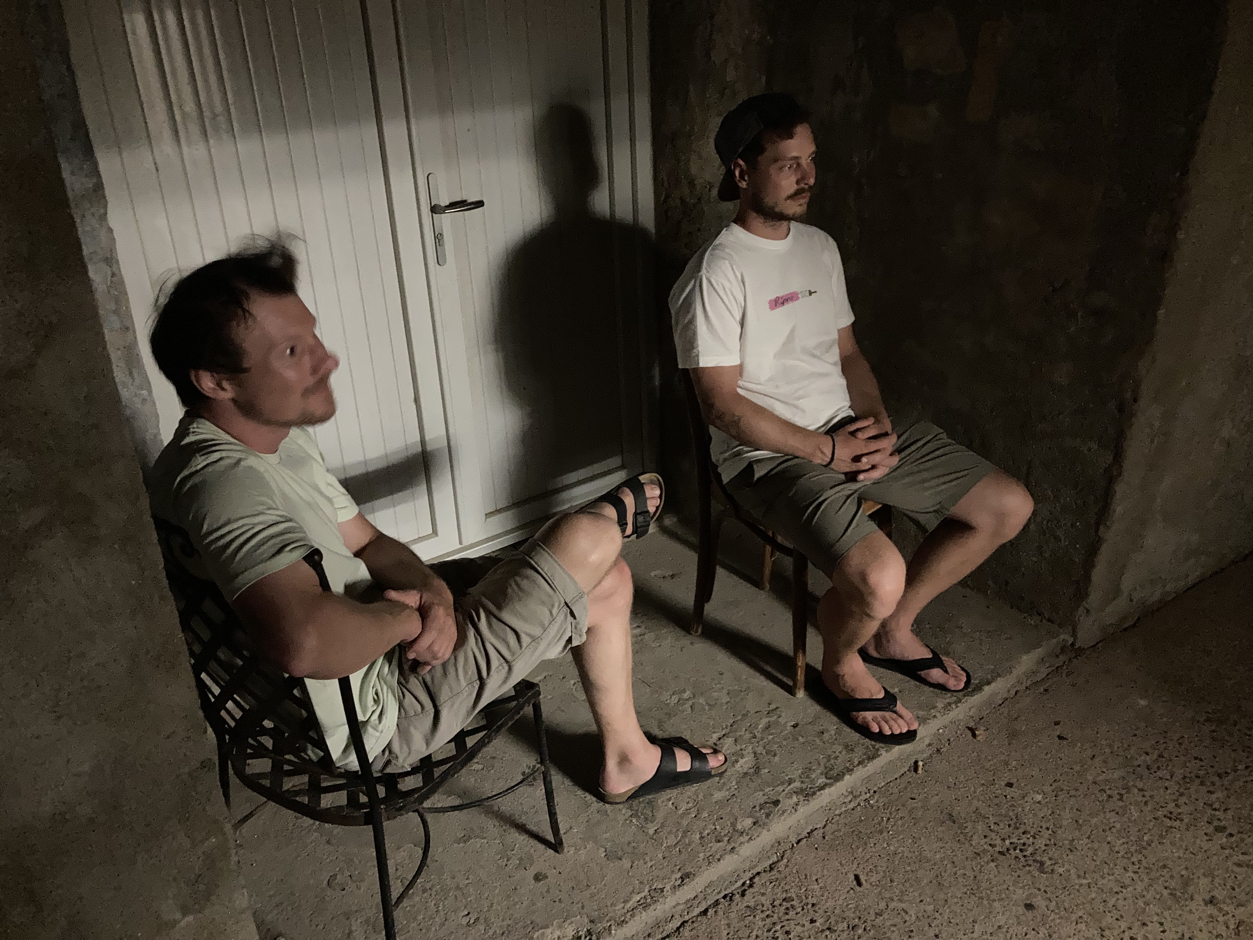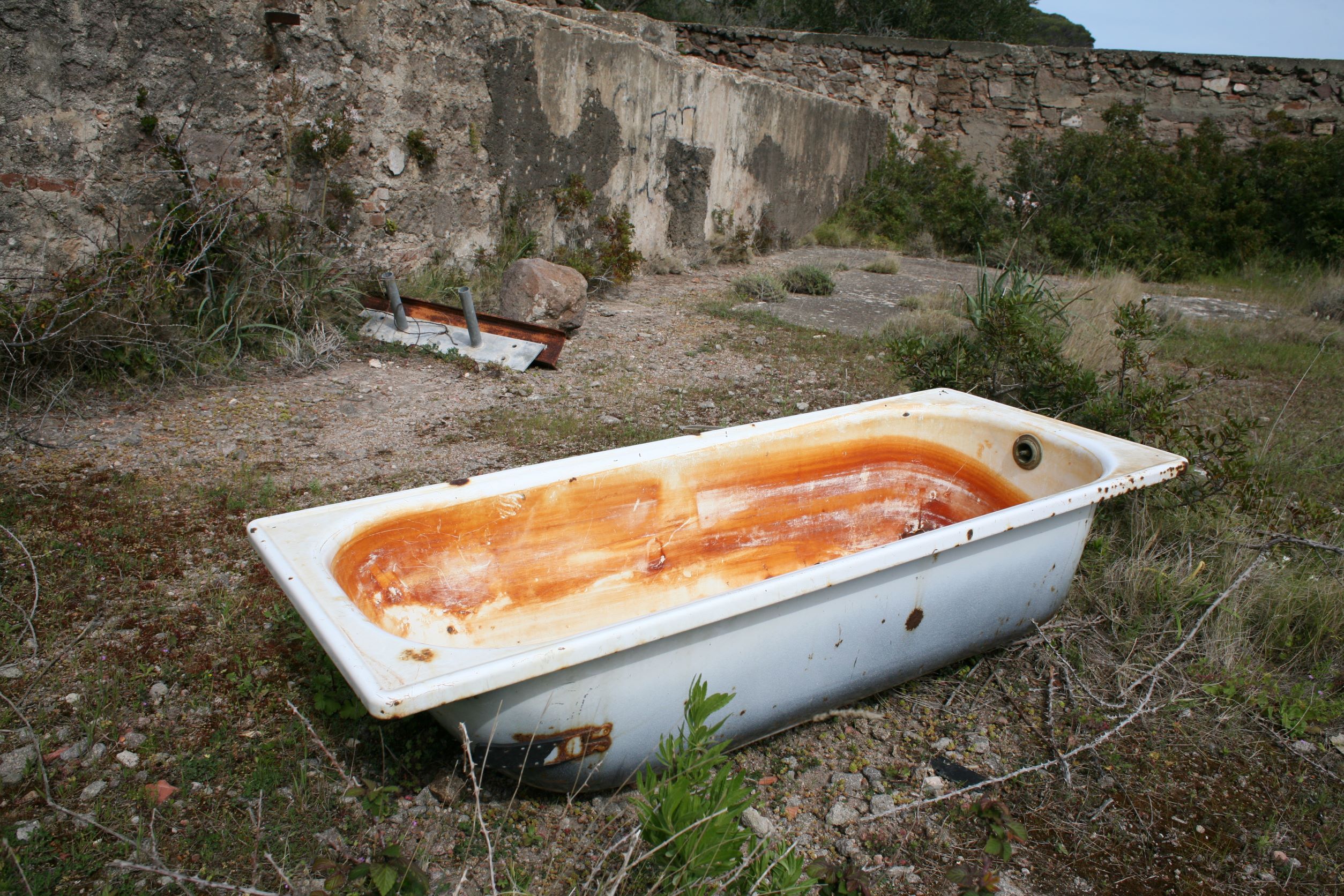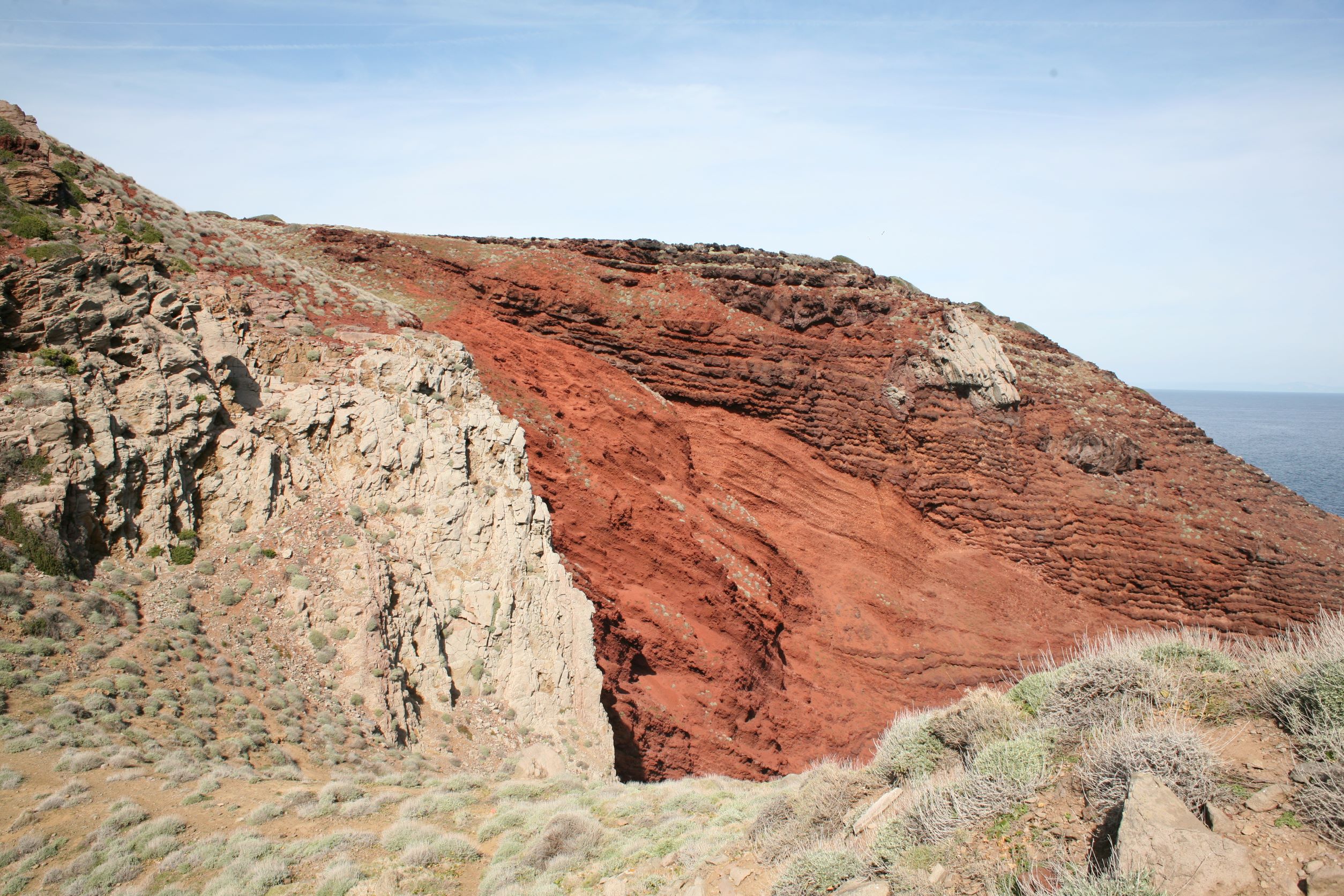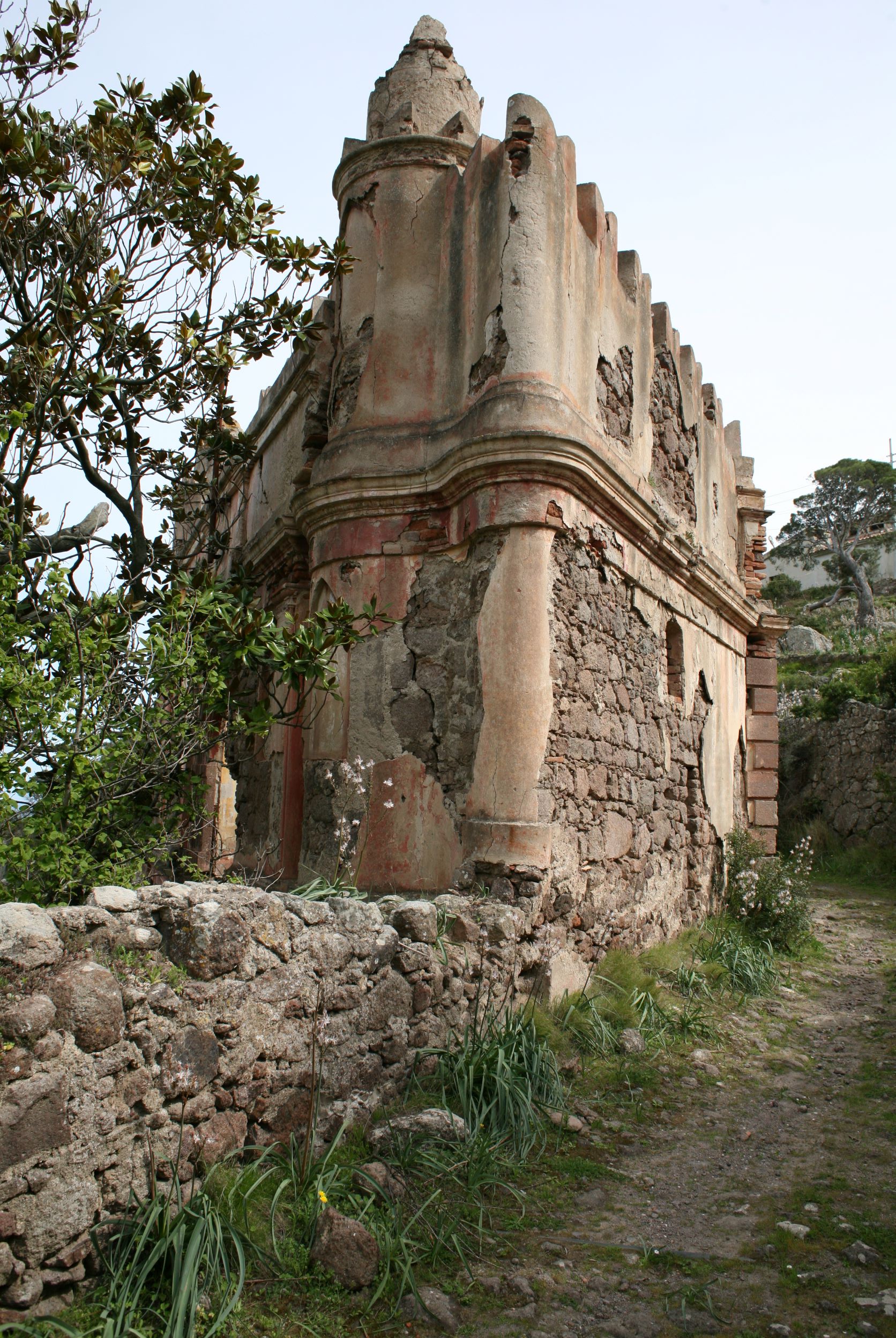 Das Leben auf einer Insel erscheint uns sinnlos, weil es in keinem Zusammenhang steht. Und Capraia steht mit dem Nichts in Zusammenhang. Ganz allein, es taucht einfach aus dem Nichts am Horizont auf wie die Osterinsel. Und dann, bist du erst mal da, fahren genau die selben Autos wie am Festland, nur, du weißt, eigentlich können die gar nirgends wohin fahren. Es gibt hier nur 800 Meter Straße!! Das hindert einen Ducatiheizer aber nicht, die Kurve entlang der Bucht mit einem Aufheuler zu nehmen, aber so richtig molto bene!! Das ist ausnahmsweise ein richtig witziger Aufheuler. Weil, so ganz ohne Zusammenhang!! Von oben, von den Bergen aus sieht man bis aufs Festland, bis nach Piombino, Elba Richtung Südosten ist genauso präsent wie Korsika im Westen, mit tief verschneiten Bergen. Fassungslos stehen wir am höchsten Punkt von Capraia in einer Kirche aus Stahlträgern, die der Wind und das Salz verrotten ließ. Teile aus Blech liegen weiter unten in der Böschung. Auf einer Broschüre steht, dass es eine Forschungsstation war. Mit solchen Fenstern?