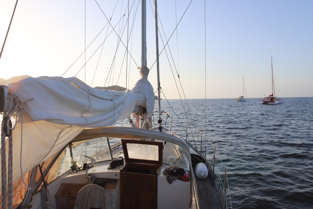 Überhaupt sind wir um vieles mehr routinierter als noch bei unserer Reise durchs Mittelmeer im Jahr 2013. Nun haben wir keine Angst mehr vor den Geräuschen, die uns vor Anker so durch den Traum wackeln, wenn die Dünung reinläuft und Ilva in eine Pendeluhr ohne Kuckkuck verwandelt. Ohne Wind beginnts eben wild zu schaukeln, was ist das Problem?
